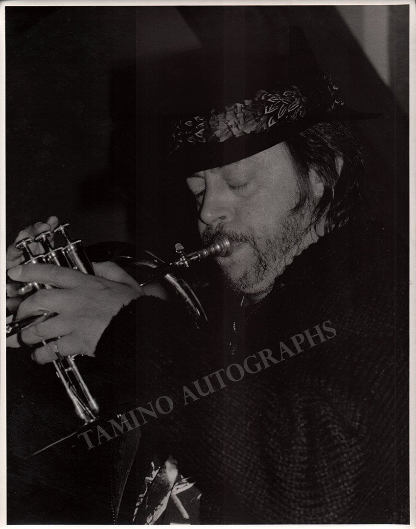 Original photos, signed on verso by photographer Jim Arkatov, dated 1996. The American trumpeter and composer is shown in performance. Each photo is 11 x 14 inches, in excellent condition.