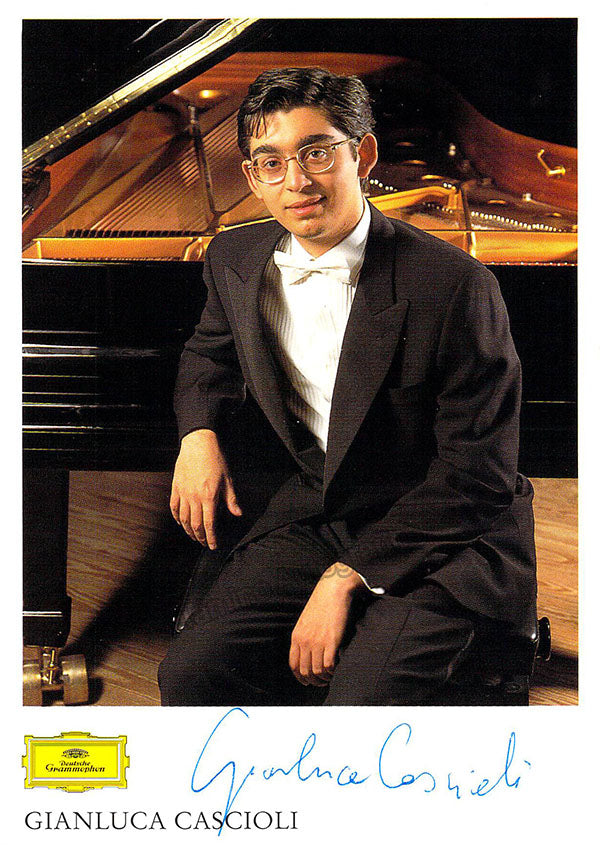 Stunning color promo photograph signed by him, shown at the piano, issued by Deutsche Grammophon. Size is 4.1 x 5.75 inches, in excellent condition.
