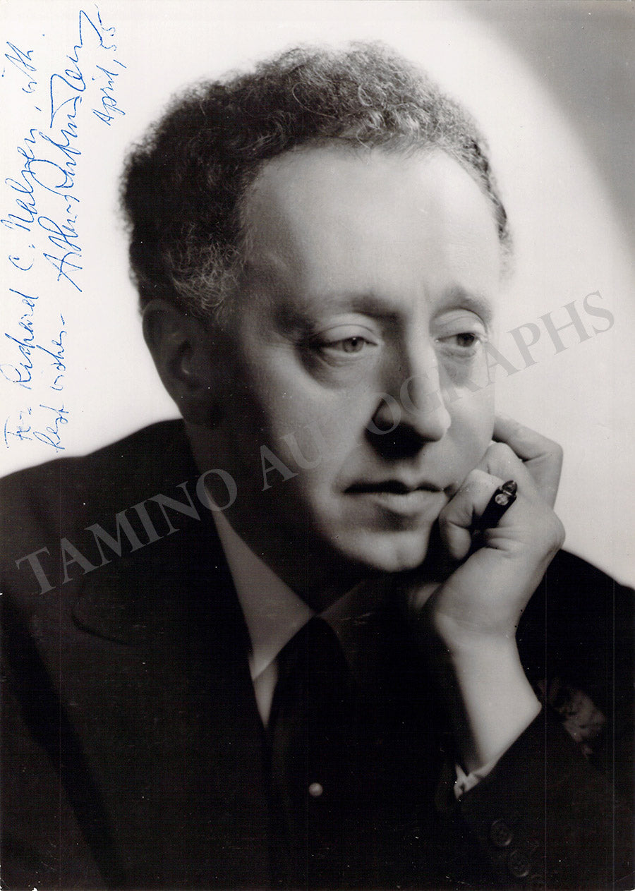 Black-and-white photograph signed and inscribed by him with a short sentiment dated in April 1955. Size is 6.25 x 8.8 inches, in excellent condition.