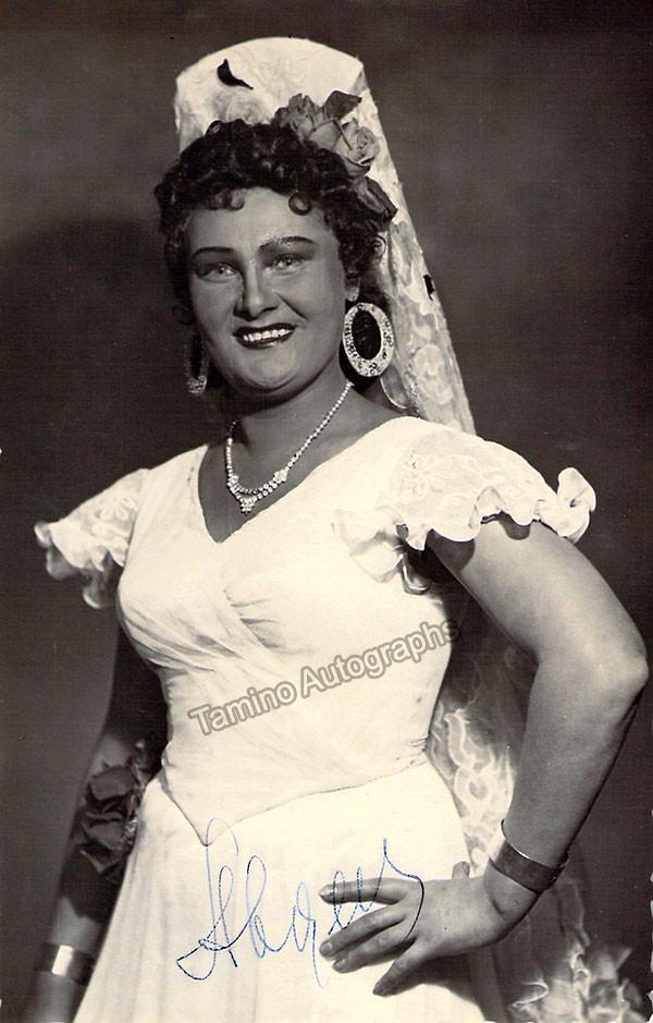 Russian mezzo-soprano (1925-2013), signed photo, shown in the title role in Carmen. Size is 3.75 x 5.5 inches, in excellent condition.