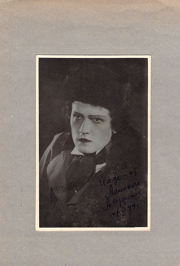 Russian tenor (1908-1987), signed photograph, shown as Lenski in Tchaikovsky's Eugene Onegin, dated in 1949. Photo size is 4 x 6.5 inches, mounted on soft cardboard, total item is 6.5 x 10 inches, in excellent condition.