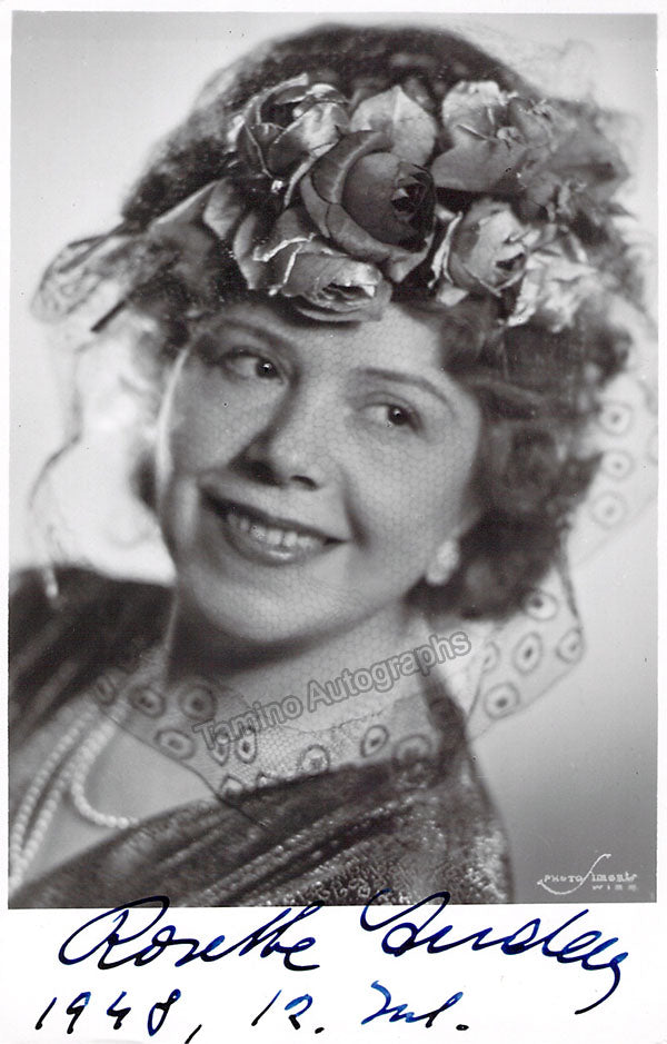 Signed photograph, shown as Fricka in Wagner's Die Walkure. Bold handwriting and signature. Stamped on verso by photographer Dietrich, Vienna. Size is 3.5 x 5.25 inches, in excellent condition.