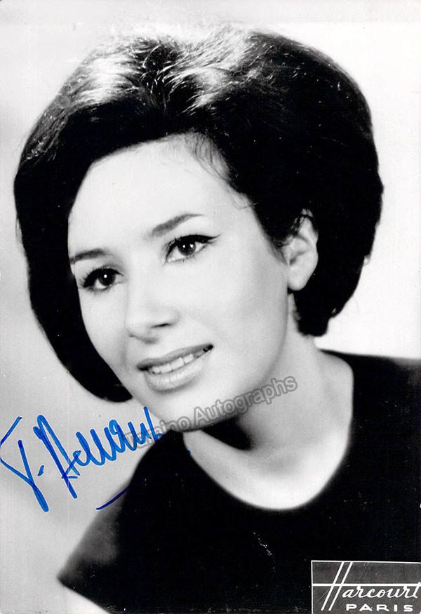 French mezzo-soprano (b.1935), signed photo, shown as herself. Stamped by photographer Harcourt, Paris. Size is 3.5 x 5.25 inches, in excellent condition.