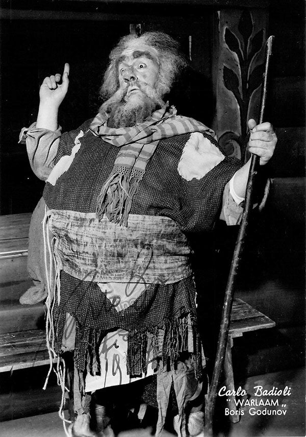 Signed postcard photograph, shown as Varlaam in Mussorgsky's Boris Godunov. Photo by Ghizzoni, Como. Size is 4 x 5.75 inches, in excellent condition.