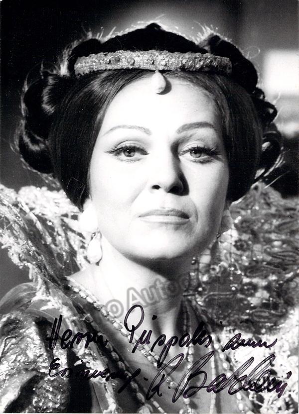 Signed photo, shown in role at the Opera in Baviera. Inscribed. Size is 4 x 5.75 inches.