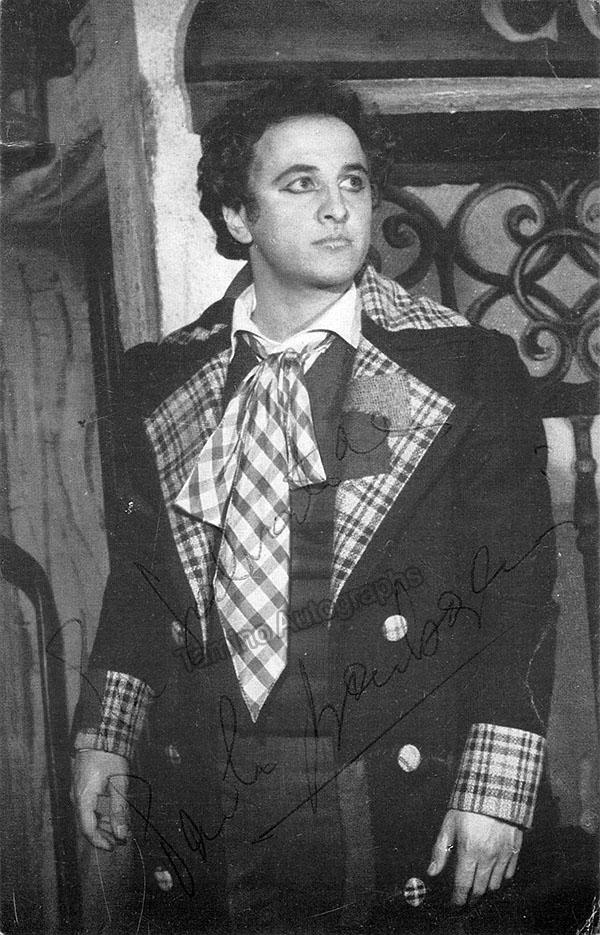 Italian tenor (b. 1946), signed photo, shown in role. Size is 3.75 x 6 inches, in excellent condition.