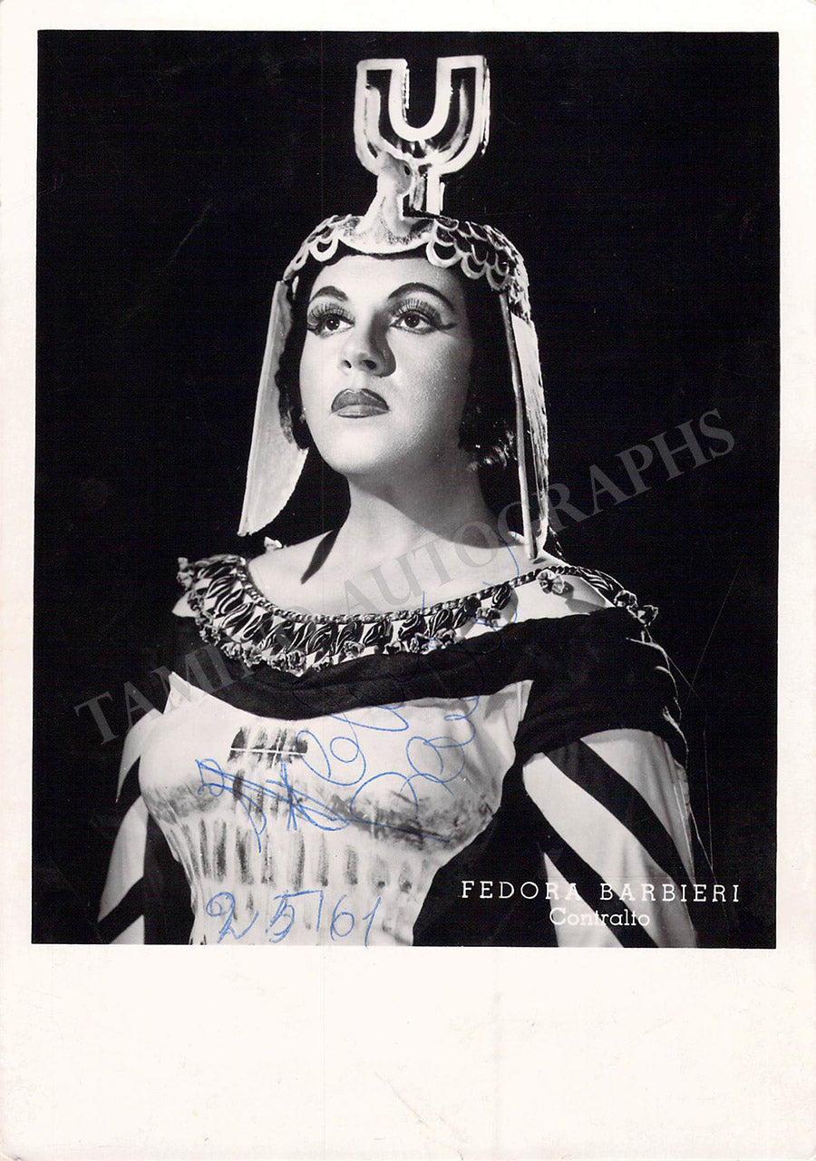 Signed photograph, shown as Amneris in Verdi's Aida, dated in 1961. Size is 5 x 7 inches, in excellent condition.