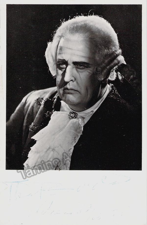 Dutch baritone (1912-1971), signed photo, shown as Scartia in Tosca, dated in 1958, Vienna. Size is 3.5 x 5.5 inches, poor contrast.