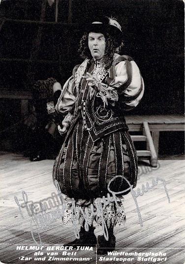 Austrian bass (1942-2009).  Signed photo shown as Van Bett in Lortzing's Zar und Zimmermann. Also signed and inscribed on verso, dated in 1986. Stamped on verso by photographer Harri Irmler, Berlin. Size 4 x 6 inches.