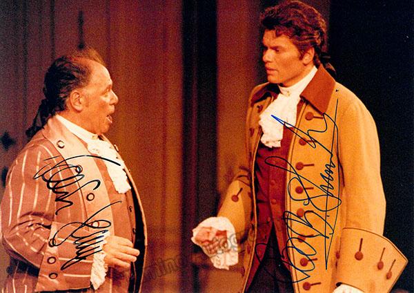 Austrian bass-baritone (1929-2000) and Danish baritone (b. 1962), double signed photo, shown in roles. Size is 5 x 7 inches, in excellent condition.