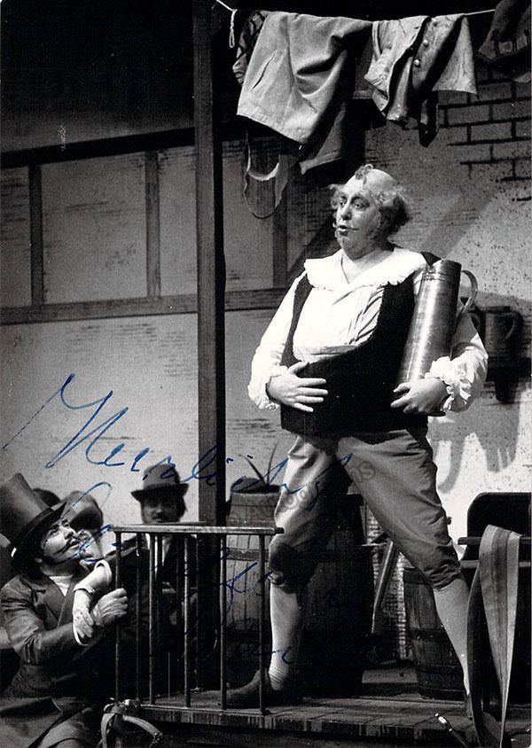 American tenor, voice teacher and actor (1928-2017) who sang mostly in Vienna and elsewhere in Europe. Signed postcard photograph, shown in the Barber of Baghdad. Stamped on verso by photographer Elisabeth Speidel, Hamburg. Size is 4 x 5.75 inches, in excellent condition.