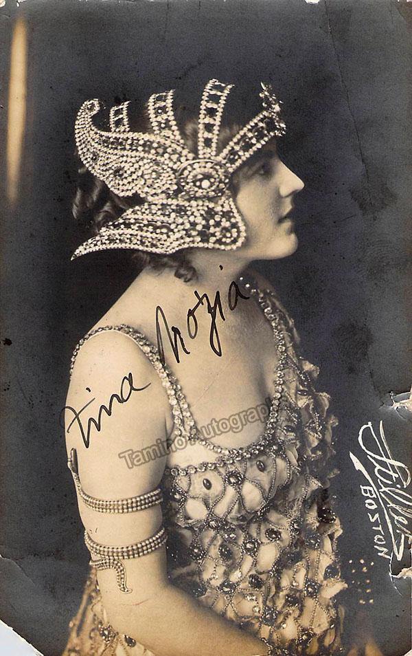 French soprano (1880-?), signed photo postcard, shown in role. Photo by Stillers, Boston. Size is 3.5 x 5.5 inches, crack on bottom left corner and some paper loss on edges, discount reflected in price.