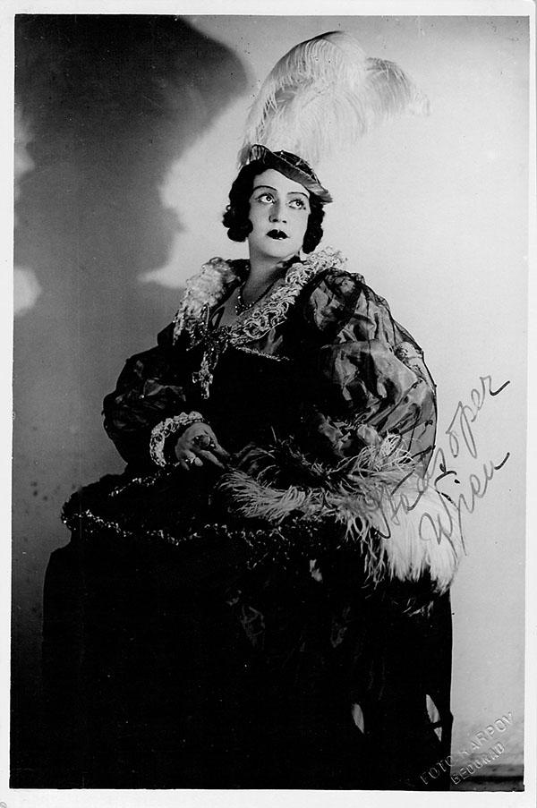 Yugoslavian soprano (1903-1986), signed photo, shown in role in Massenet's Don Quichotte, in Vienna. Blind stamp on front by photographer Harpov, Belgrade. Size 4.5 x 7 inches, in excellent condition.