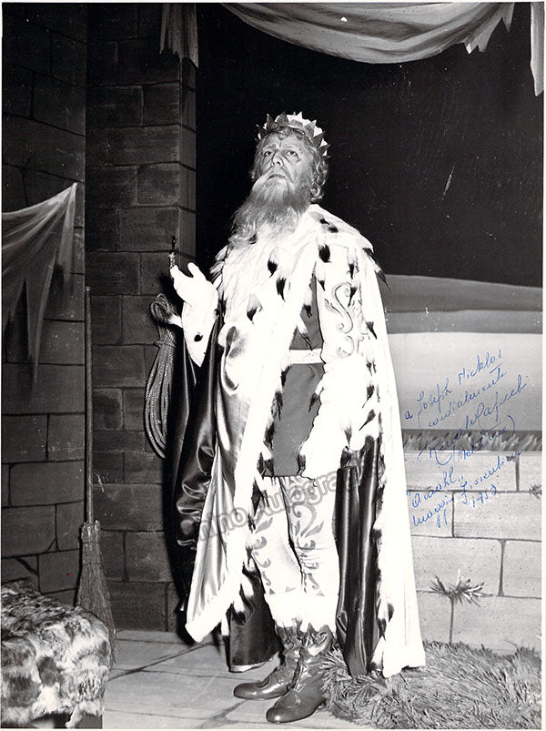 Signed photograph, shown as Melitone in Verdi's La Forza del Destino, inscribed and dated in 1959. Stamped on verso by photographer Levi, Florence. Size is 6.75 x 9 inches, in excellent condition.