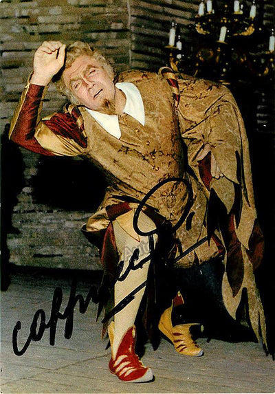 Signed photograph, shown as Figaro in Rossini's Barbiere di Siviglia. Size is 4 x 5.75 inches, in excellent condition.