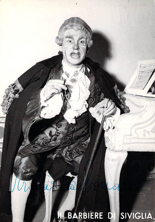 Italian baritone (1925-1988), signed photograph, shown as Dr. Bartolo in Rossini's Barbiere di Siviglia. Stamped on verso by Foto Wells photo studio, Bergamo. Size is 4 x 5.75 inches, small crease on bottom left, otherwise in excellent condition.