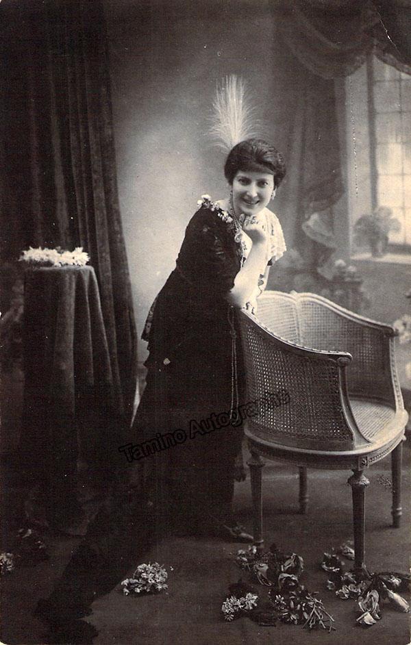 Italian soprano (1887-?), signed photo postcard, shown as herself, dated in 1916. Signature on verso. Size is 3.5 x 5.5 inches, in excellent condition.