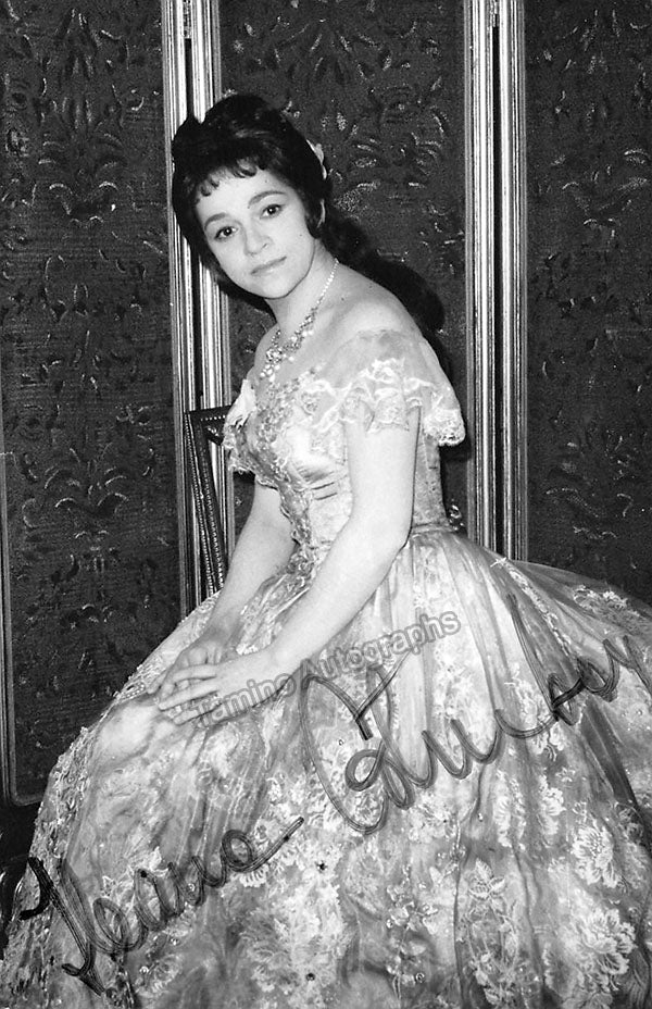 Signed photograph, shown as Adina in Donizetti's L'Elisir D' Amore. Stamped on verso by photographer Clive Barda, London. Size is 4.25 x 6.25 inches, in excellent condition.