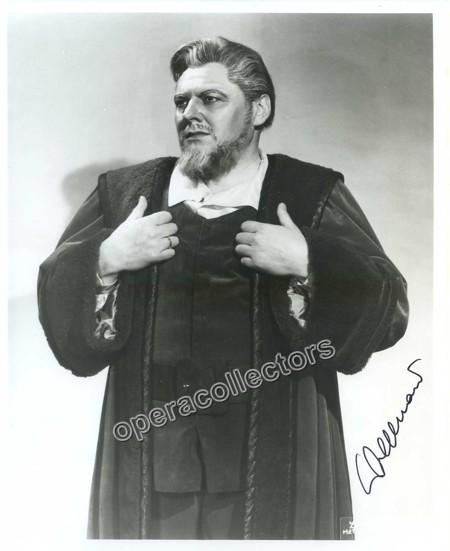 Signed photograph, shown as King Phillip in Verdi's Don Carlo, dated in New York in 1958. Stamped on verso by Fayer photo studio, Vienna. Size is 3.25 x 5.25 inches, in excellent condition.