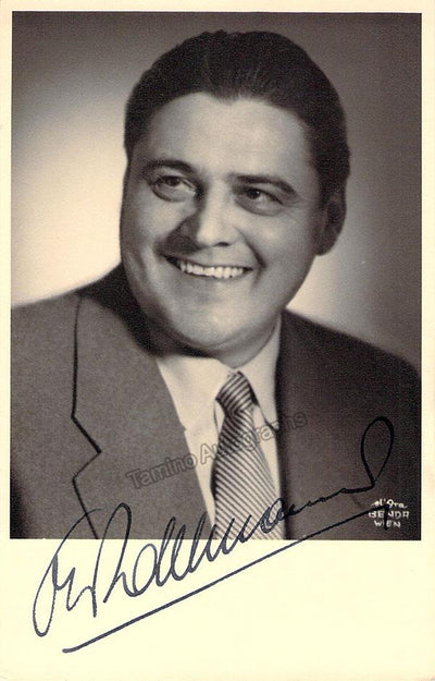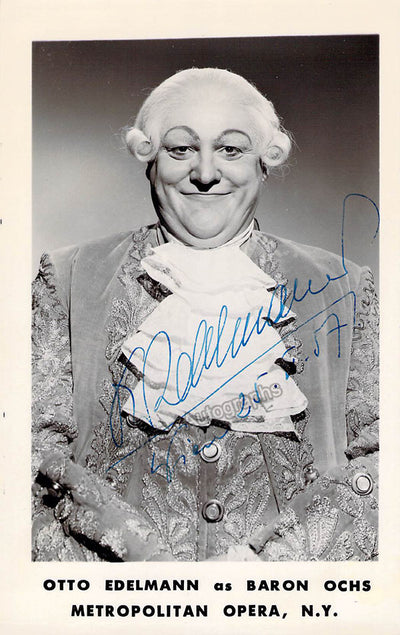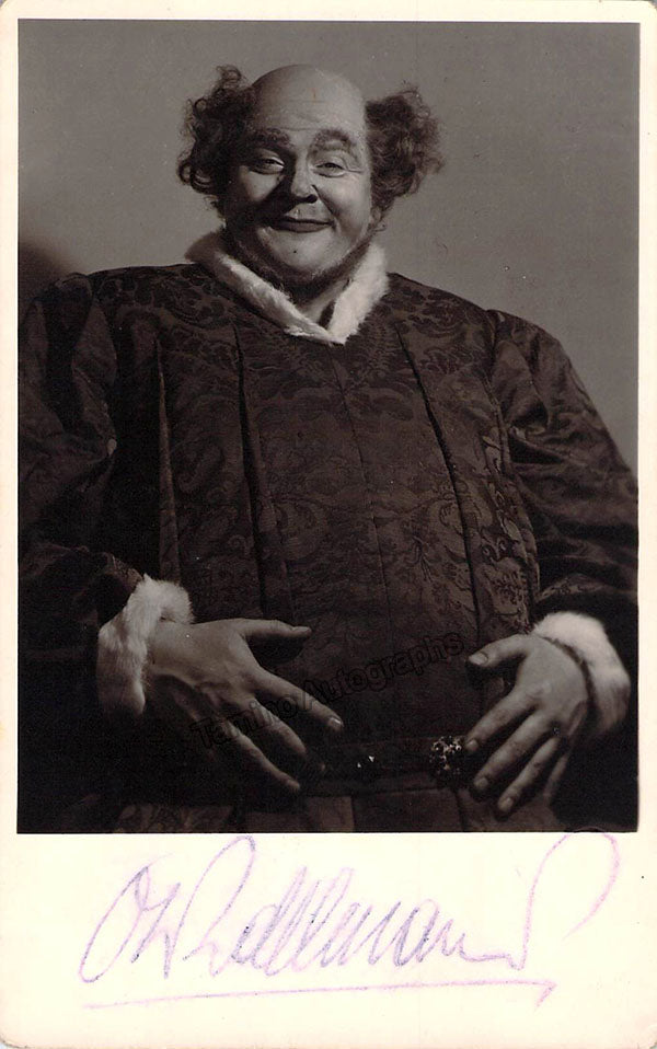 Signed postcard photograph, shown as Baron Ochs in Richard Strauss's Der Rosenkavalier. Size is 3.5 x 5.5 inches, mounting traces on verso, otherwise in very good condition.