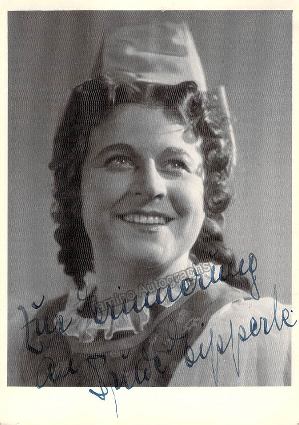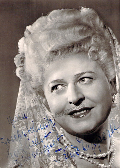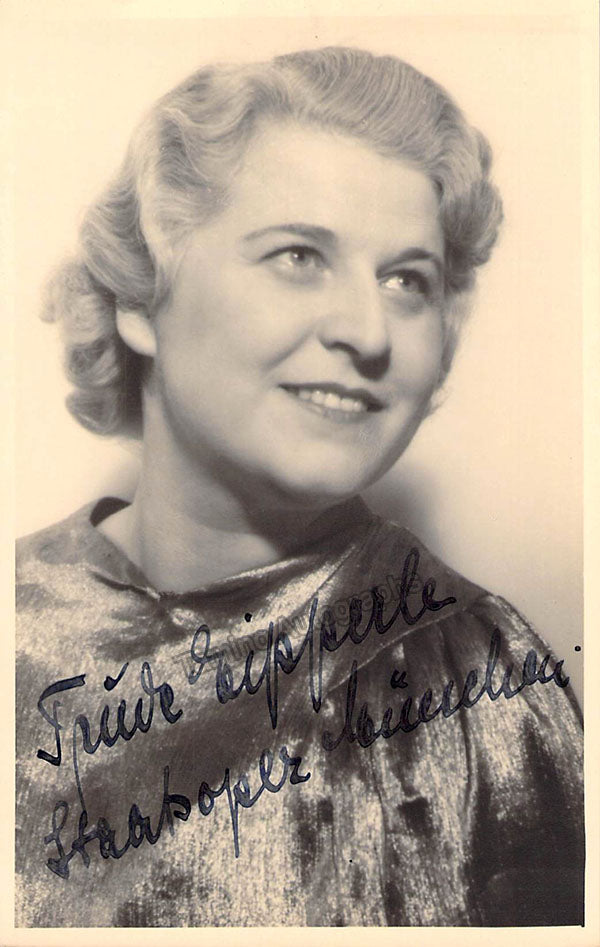 Signed photo postcard, shown as the Countess in Mozart's Nozze di Figaro, inscribed. Photo by Hannes Killian, Stuttgart. Size is 4 x 5.75 inches, in excellent condition.