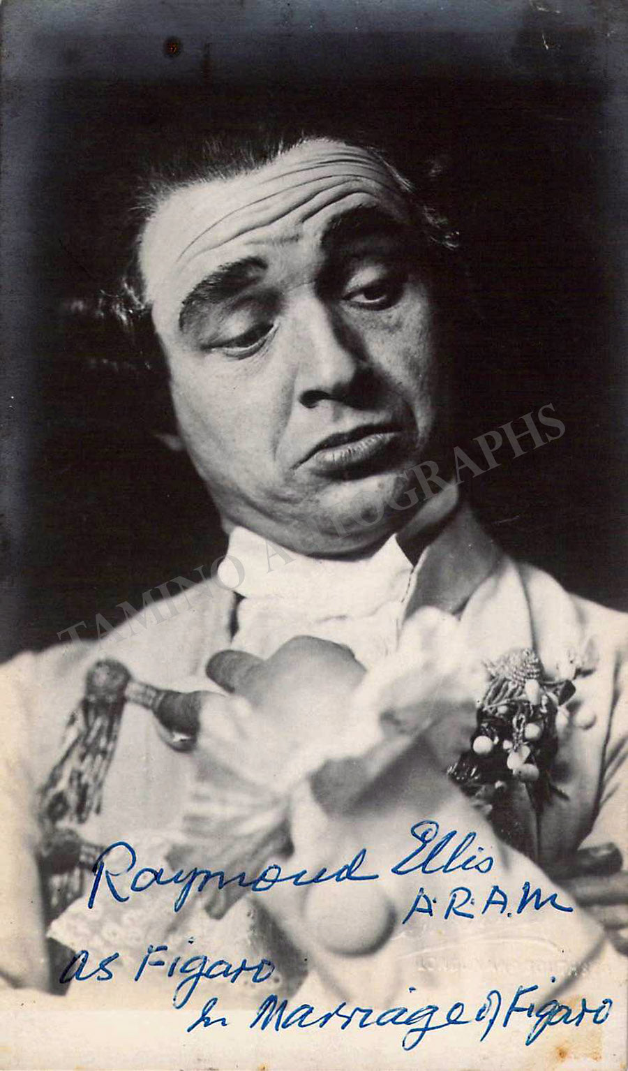 British baritone, active with the British National Opera Company in the early twentieth century. Signed postcard photograph, shown as Figaro in Mozart's Nozze di Figaro, size is 3.25 x 5.25 inches, some silvering and small stains on verso, otherwise in very good condition.