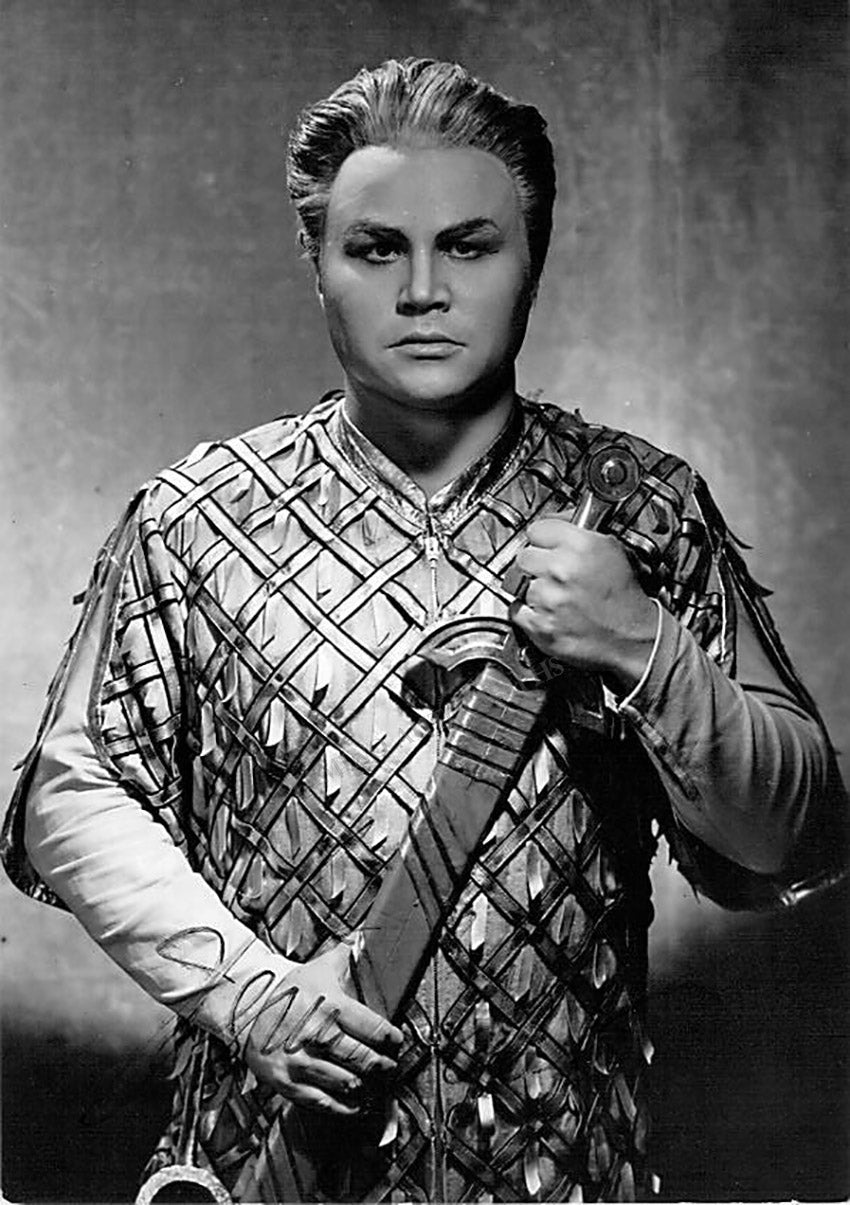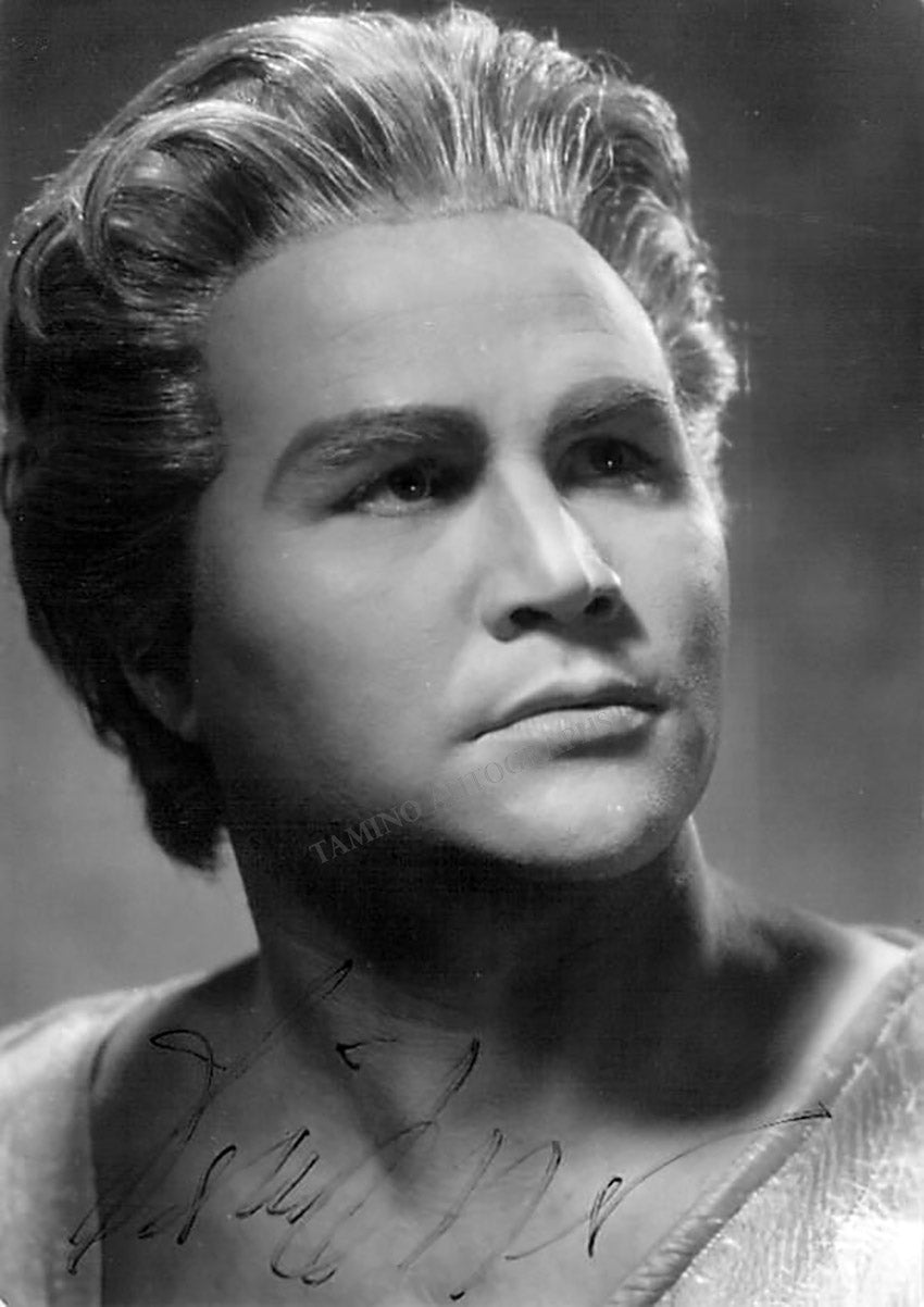 Signed postcard photograph, shown in the title role of Wagner's Lohengrin at Bayreuth Festival, 1967. Size is 4 x 5.75 inches, in very good condition.