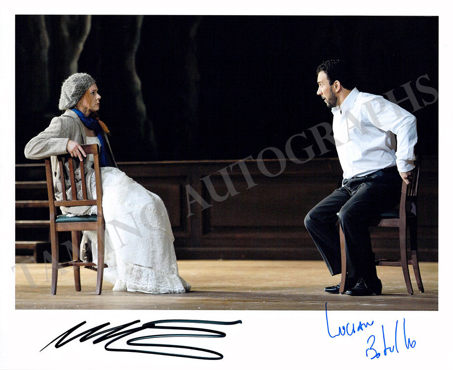 Fine color photograph signed by both artists, shown in Rossini's "La Donna del Lago". Size is 7.9 x 9.75 inches, in excellent condition.