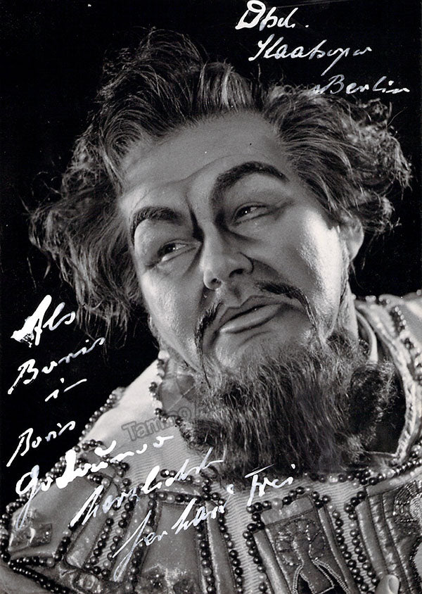 Signed photograph, shown in the title role of Mussorgsky's Boris Godunov, inscribed. Stamped on verso by photographer Marion Schone. Size is 4 x 5.75 inches, some stains on verso, otherwise in excellent condition.