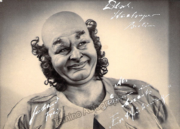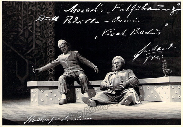 Signed photograph, shown as Osmin in Mozart's Entfuhrung aus dem Serail, inscribed and signed in Berlin. Size is 4.25 x 5.75 inches, mounting traces on verso, otherwise in excellent condition.