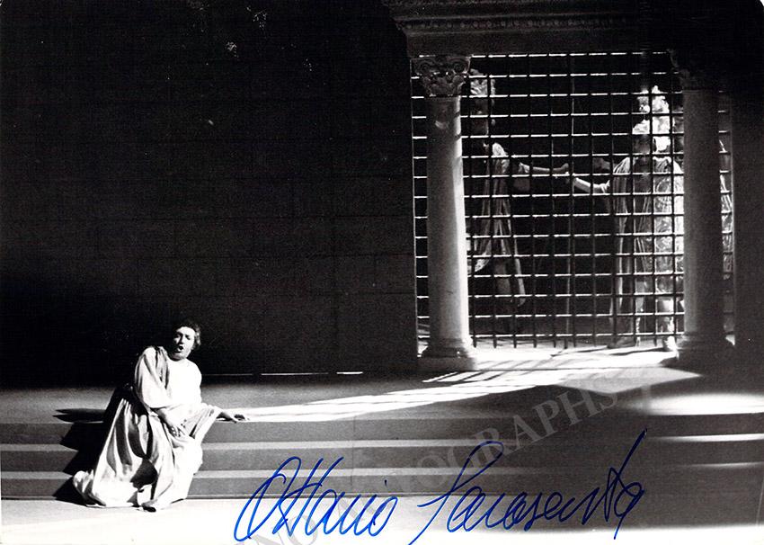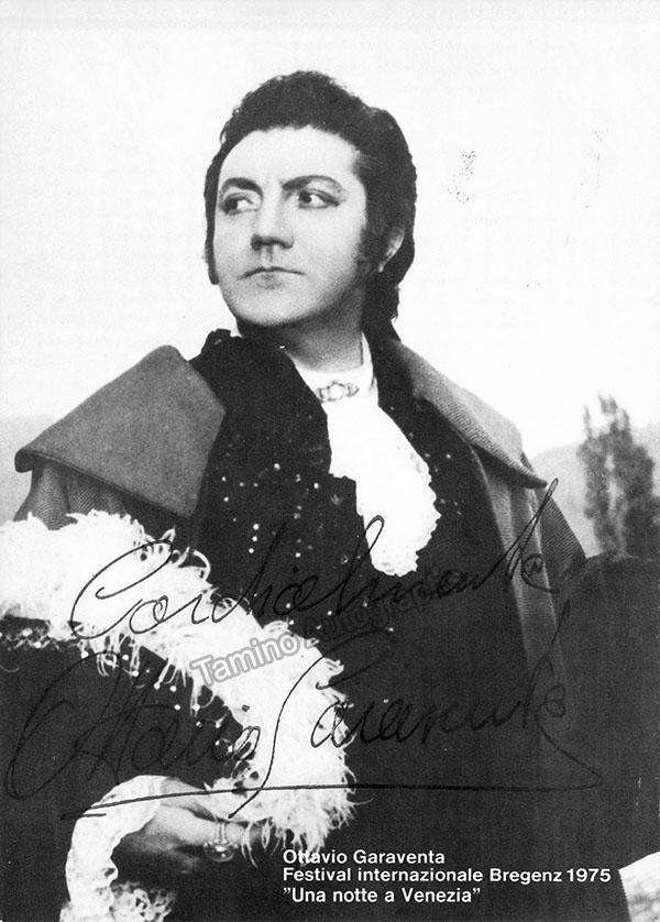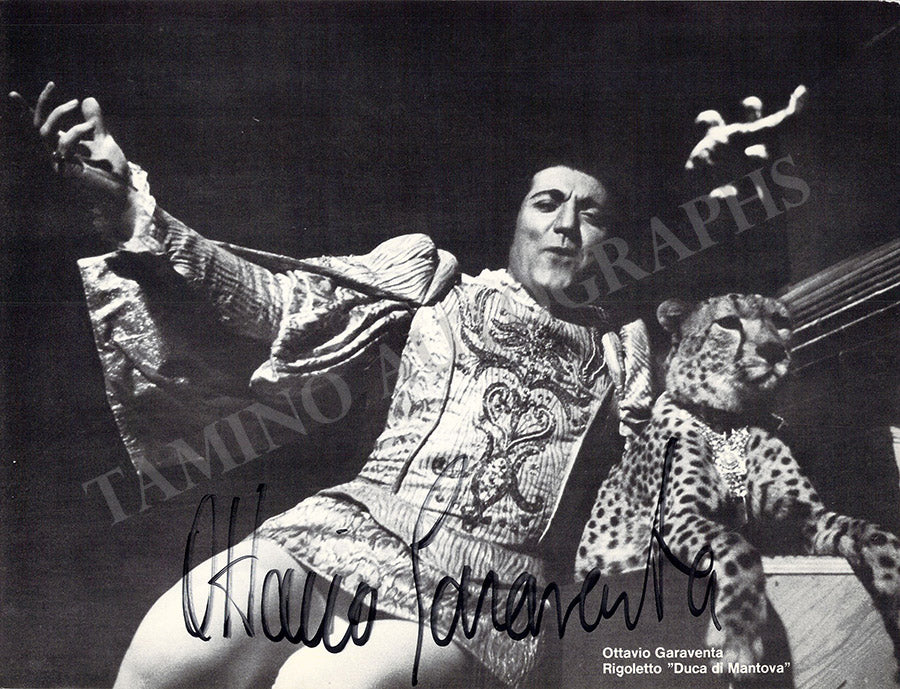 Signed photograph, shown in role at the 1975 Bregenz International Festival's 'Notte a Venezia', inscribed. Size is 5 x 7 inches, in excellent condition.