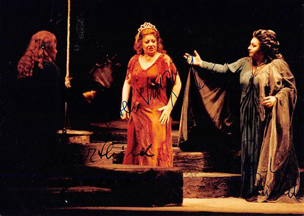 German soprano (b.1937) and German soprano (b.1936), double signed photo, shown in Die Frau Ohne Schatten, at the Vienna State Opera. Size is 7 x 5 inches