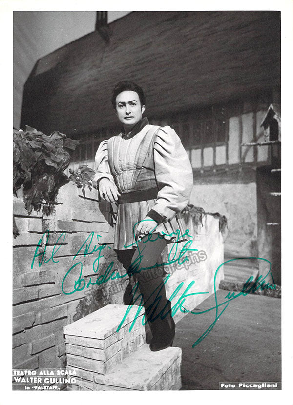 Italian tenor (1933- ), signed photograph, shown as Fenton in Verdi's Falstaff at Teatro La Scala, a photo by Piccagliani, La Scala, Milan. Size is 5 x 7 inches, in excellent condition