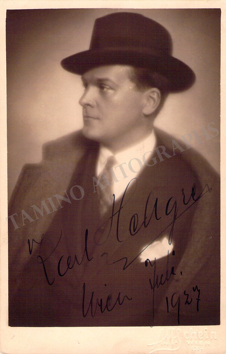 Scandinavian Baritone (1888-1965), signed postcard photograph, shown as himself, dated in 1927. Blind stamped on front by photographer M.S. Chein, Vienna. Size is 3.25 x 5.25 inches, in excellent condition.