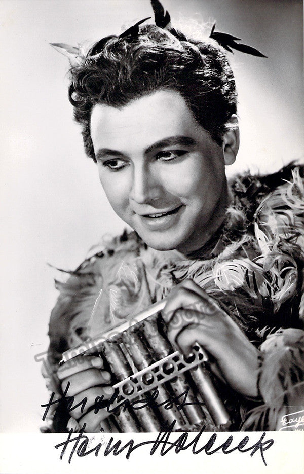 Nice black-and-white photo postcard signed by him, shown as Papageno in Mozart's Die Zauberflöte. Size is 3.5 x 5.5 inches, in excellent condition.