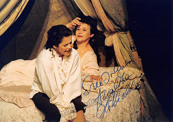 Nice color photograph signed by both artists, shown in a performance of Strauss' opera Der Rosenkavalier. Size is 7 x 5 inches, printed sticker on verso, in excellent condition.
