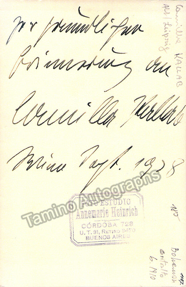Czech mezzo (1910-?). Photo postcard signed on verso, shown as herself, dated in 1958. Stamped on verso by photographer Annemarie Heinrich, Buenos Aires, Argentina. Size is 3.75 x 6 inches