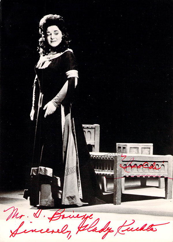 Signed photograph, shown in title role of Richard Strauss's Elektra with Regina Resnik as Klytemnestra. Inscribed. Size is 5 x 7 inches, in excellent condition.