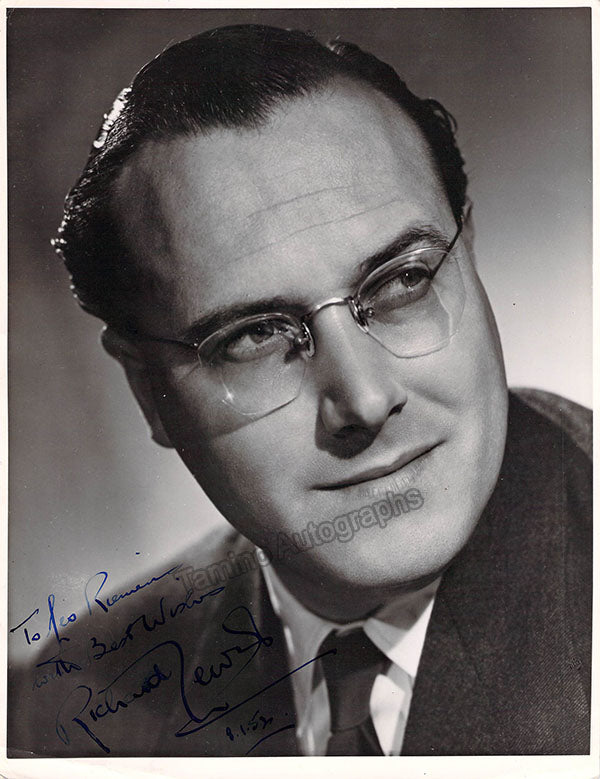 Signed photograph, shown as himself, inscribed and dated in 1952. Stamped on verso by the Photo Reproduction Company, London. Size is 7.5 x 9.75 inches, small crease on bottom left, otherwise in excellent condition.