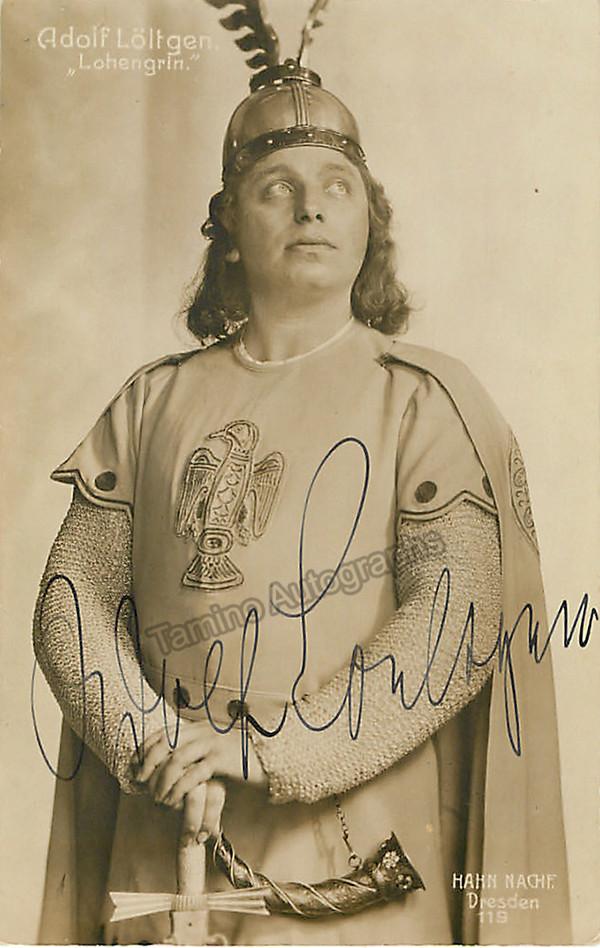 German tenor (1881-1968), signed photo postcard, shown in the title role in Lohengrin, Dresden. Size is 3.25 x 5.25 inches, in excellent condition.