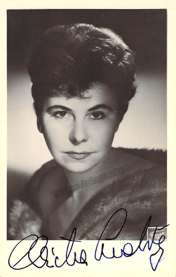 Signed postcard photograph, shown in role (most likely Dorabella in Mozart's Cosi Fan Tutte with Irmgard Seefried as Fiordiligi). Photo by Ellinger, Salzburg. Size is 4 x 5.75 inches, in excellent condition.