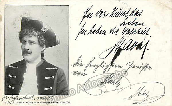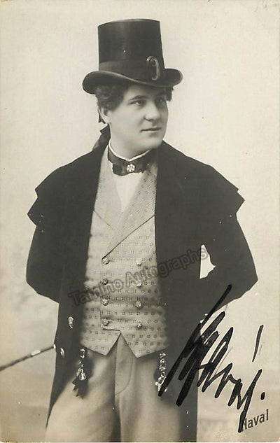 Signed photo postcard, shown in role (probably in La Dame Blanche). Size is 3.5 x 5.5 inches