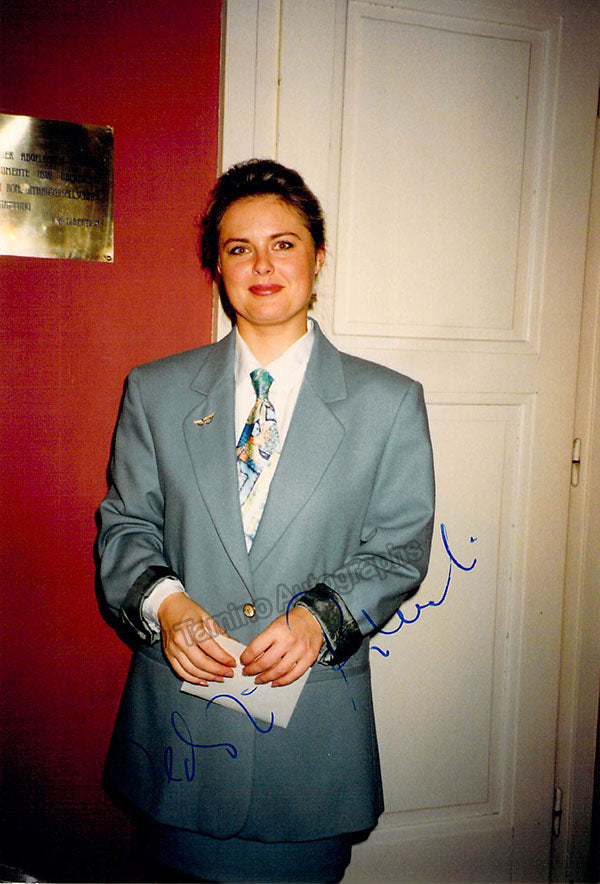 Austrian-Hungarian soprano (b. 1962), signed photograph, shown possibly in role backstage. Size is 4 x 5.75 inches, in excellent condition.