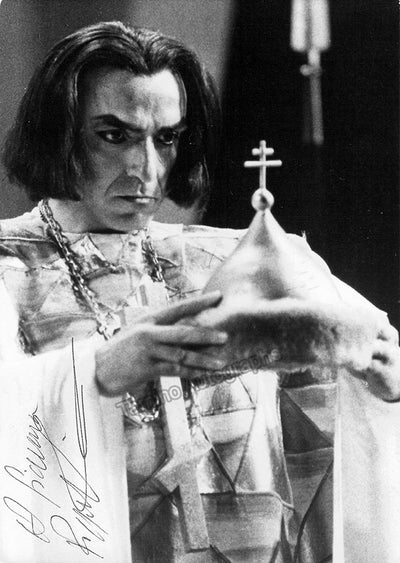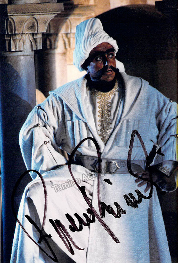 Black-and-white photograph signed by him, shown in role; ink-stamped on verso by photographer Sabine Toepffer (Munich). Size is 4.1 x 5.75 inches, in excellent condition.