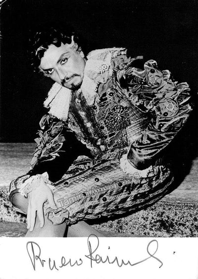 Beautiful black-and-white promo photograph signed by him, shown in costume as Alfonso D'Este in Donizetti's Lucrezia Borgia. Size is 3.75 x 5.5 inches, in excellent condition.