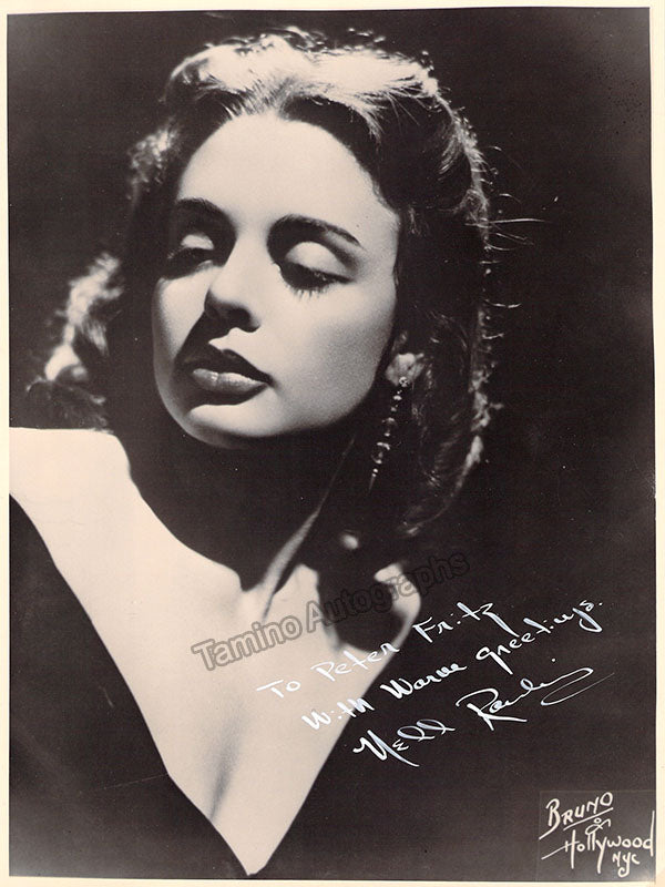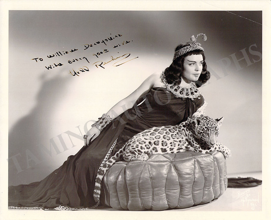 Signed photograph, shown as herself, inscribed. Photo by Bruno of Hollywood and New York. Size is 7 x 9.25 inches, mounting tape traces on verso, otherwise in excellent condition.