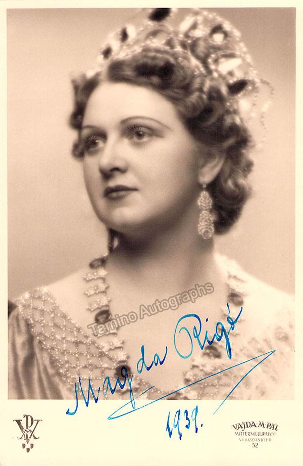 Hungarian soprano (1910-1985), signed photo, shown in role (possibly Puccini's Tosca), dated in 1939. Photo by Vajda M. Pal, Budapest. Size is 4.5 x 7 inches, in excellent condition.
