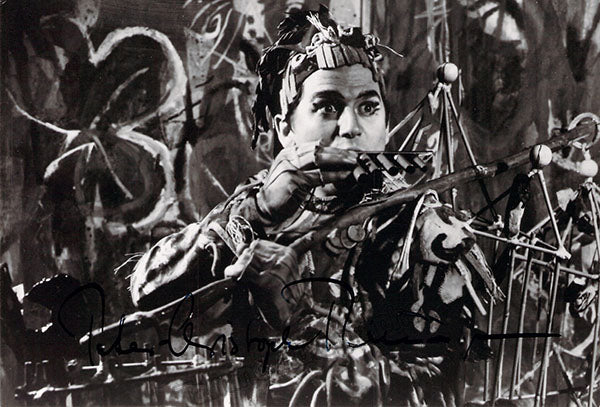 Signed photograph, shown as Papageno in Mozart's Die Zauberflote. Size is 4 x 5.75 inches, small stain on verso, otherwise in excellent condition.