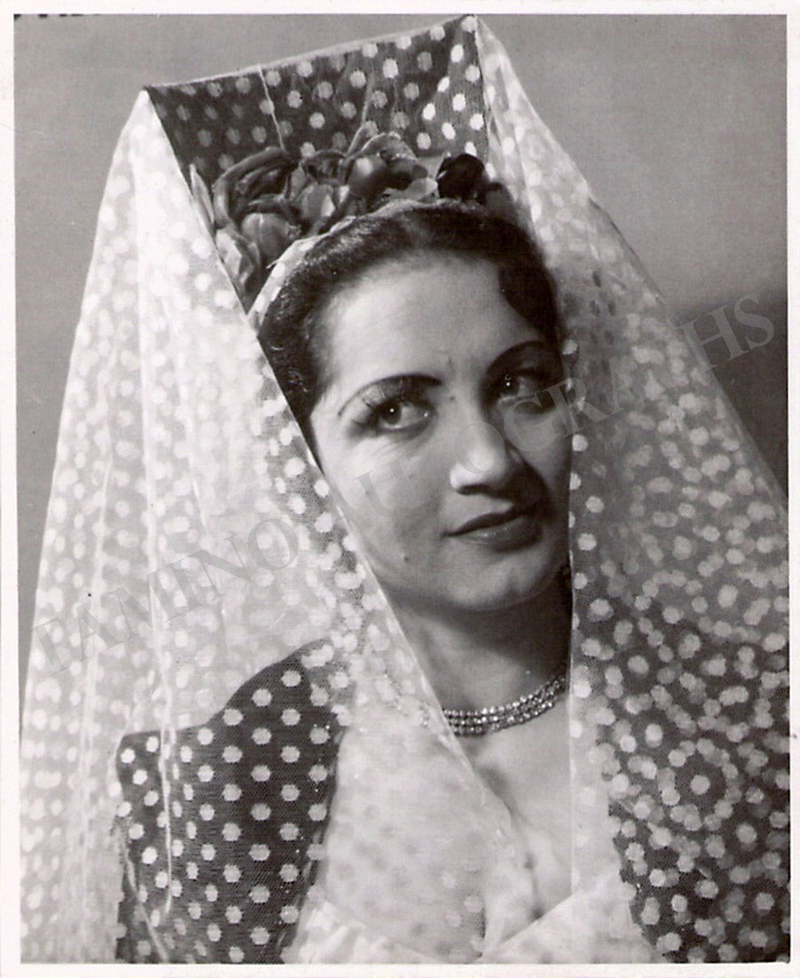 Slovak mezzo-soprano, signed photograph, shown in role in Bizet's Carmen, signed and inscribed on verso. Size is 2.75 x 3.25 inches, in excellent condition.