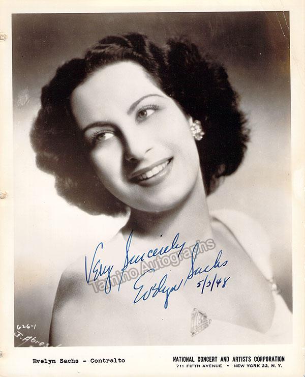 American mezzo-soprano (1924-2008), Signed publicity photo, shown as herself,  dated in 1948. Photo by James Abresch, New York. Size is 8 x 10 inches, slight creasing on left edges and crease on top right, otherwise in very good condition.